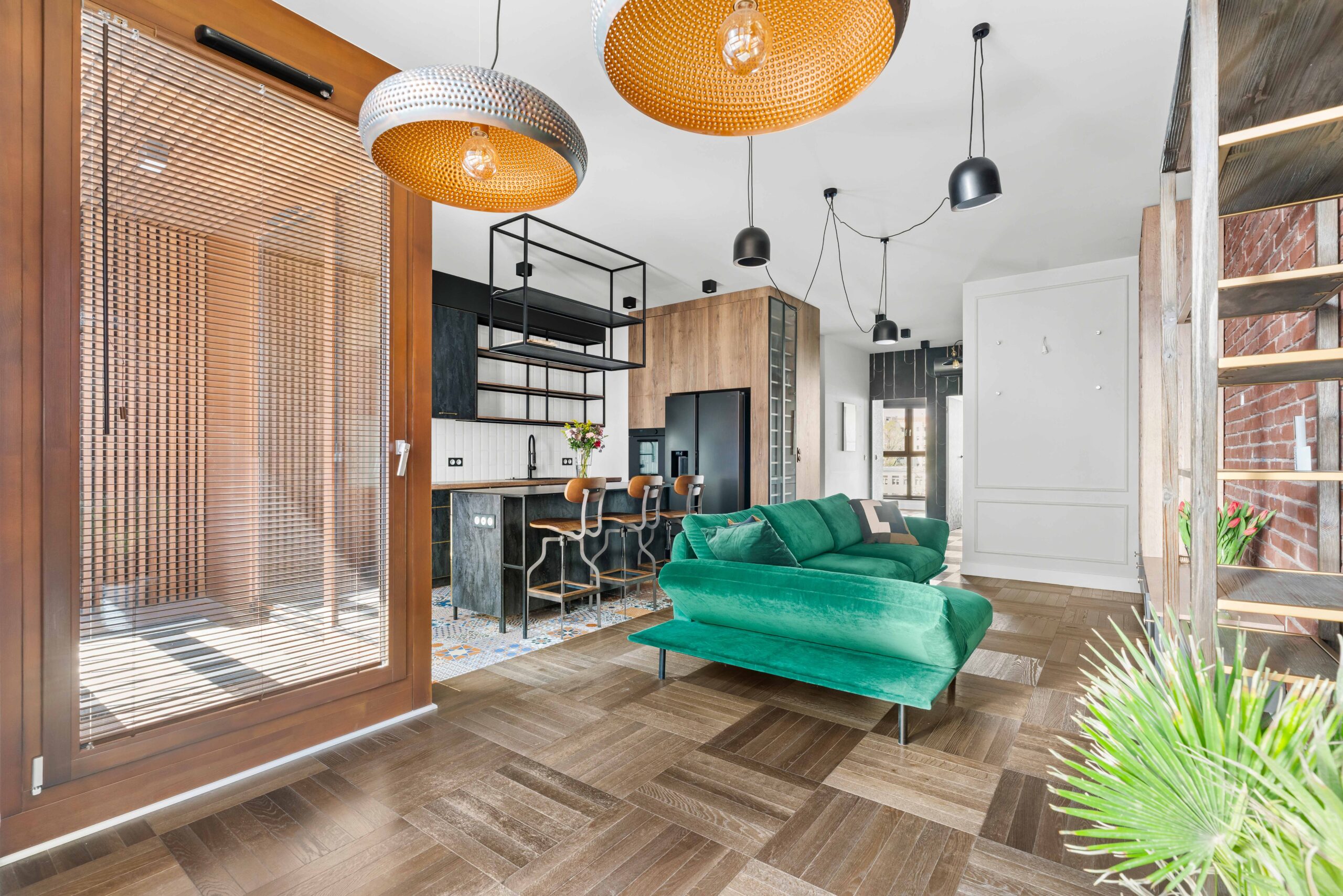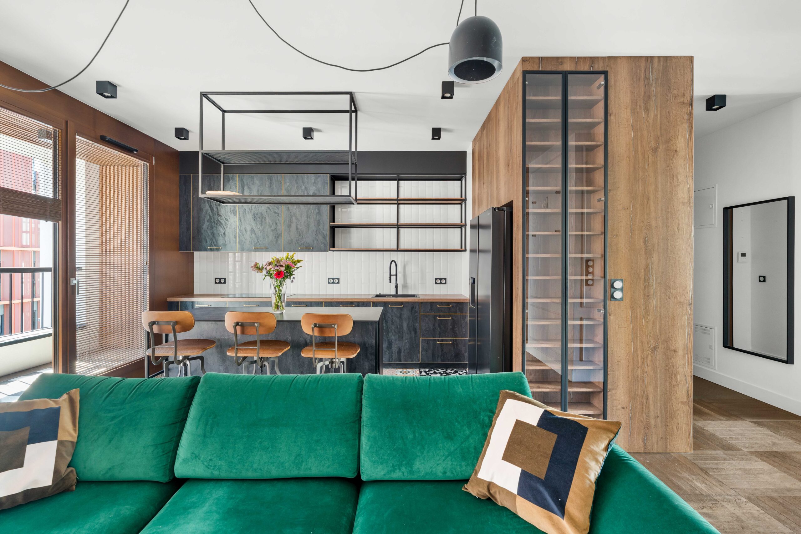 Biuro nieruchomości The Rooms ma przyjemność zaprezentować unikatowy apartament, łączący surowy, industrialny design z najwyższym standardem wykończenia. Wnętrze charakteryzuje się przemyślanym, dwustronnym układem, który wyraźnie oddziela strefę dzienną od prywatnej.