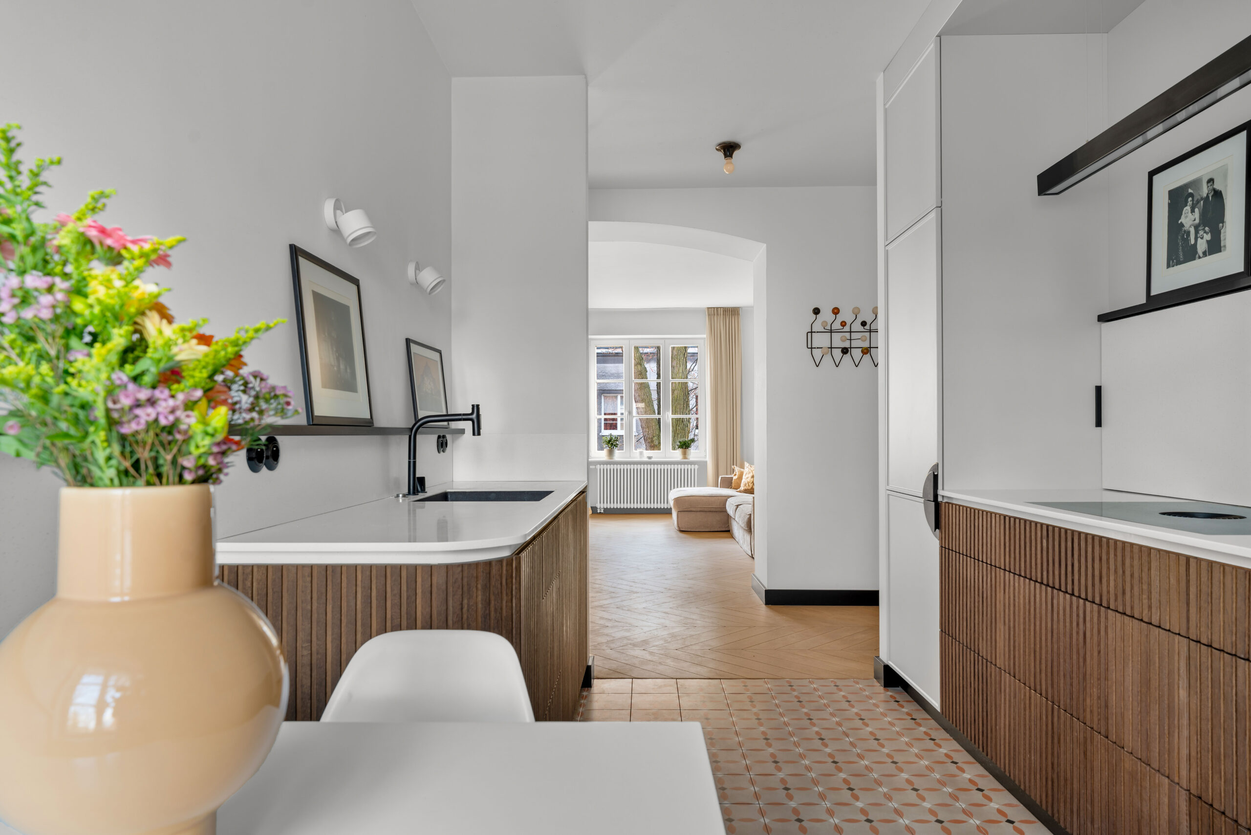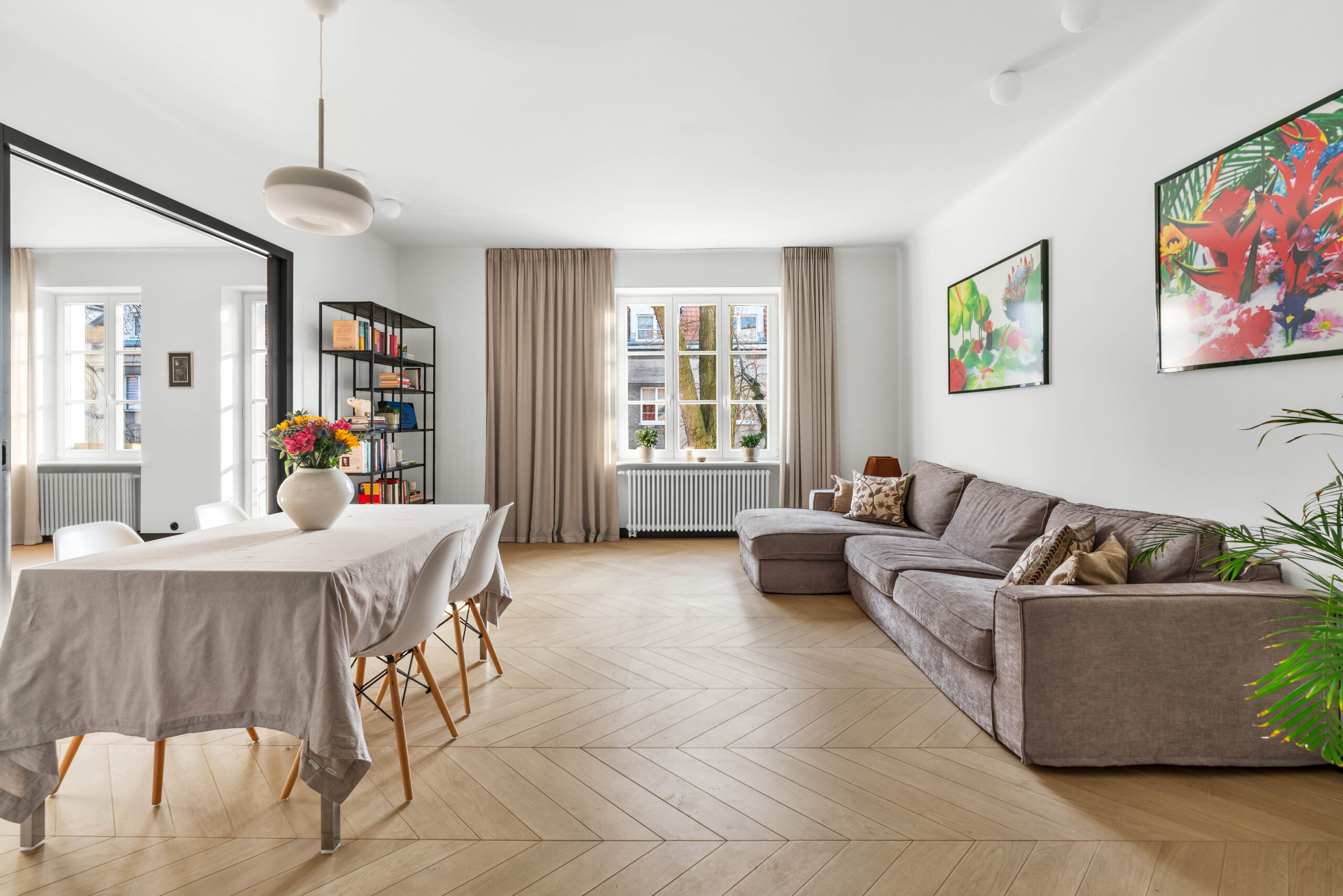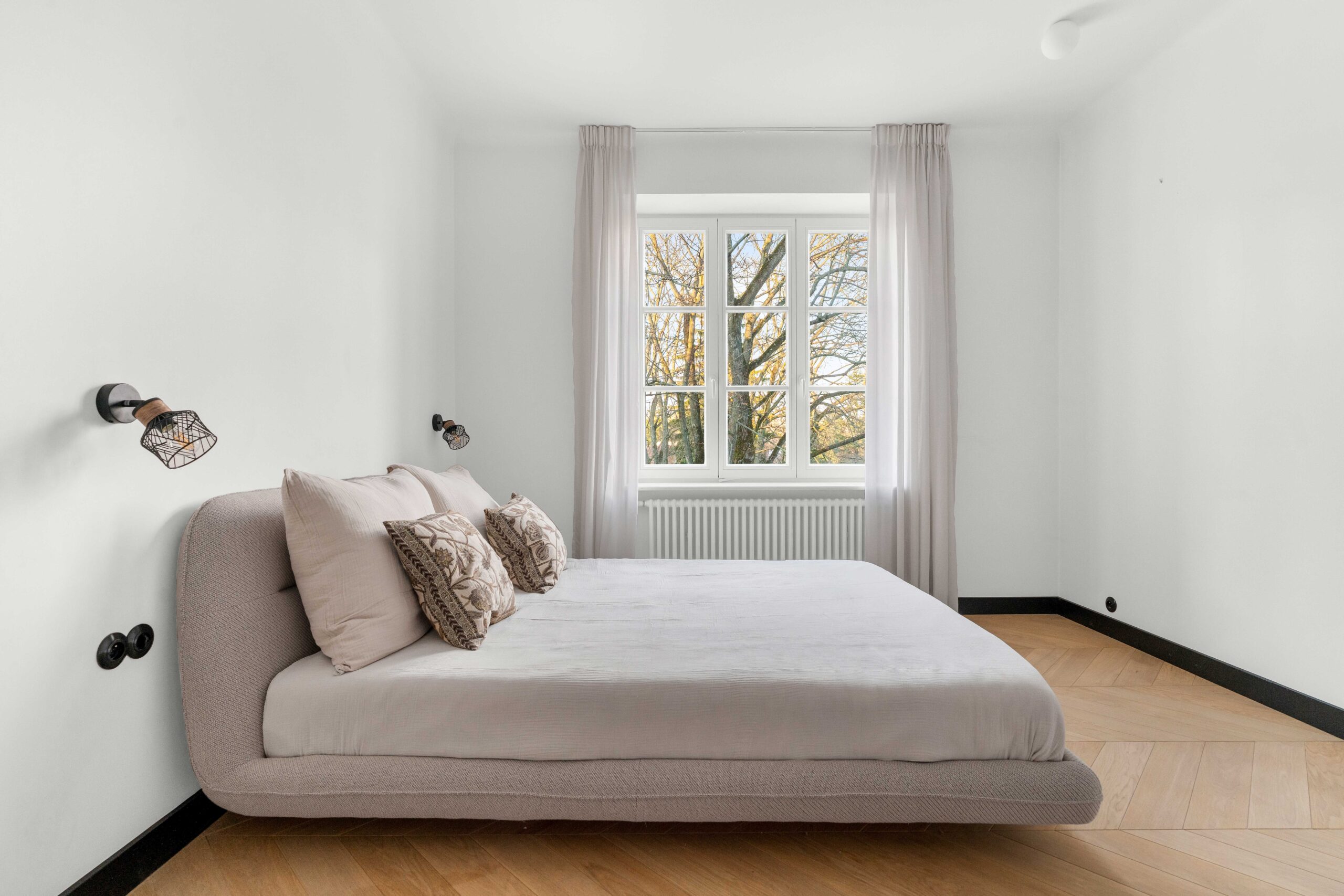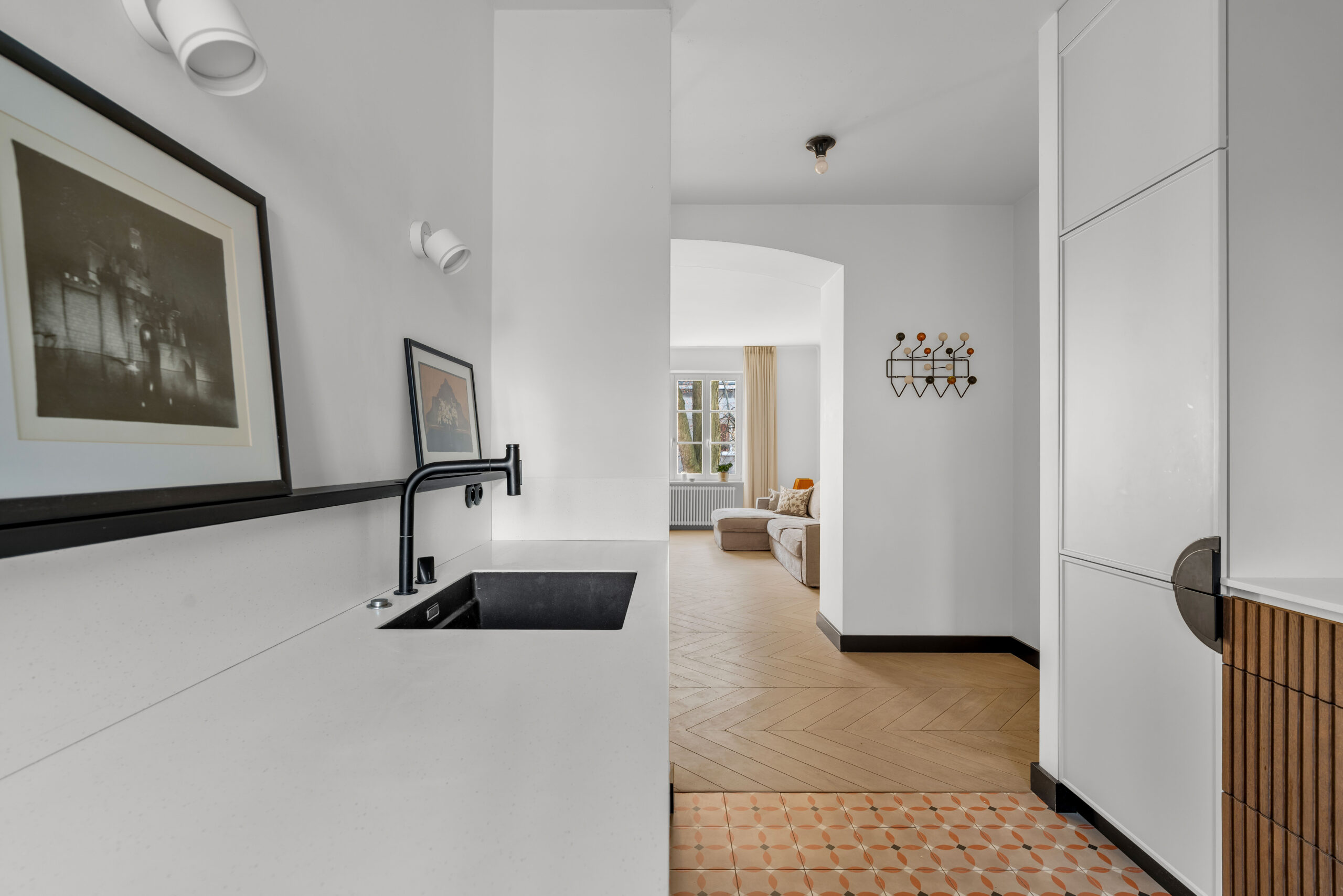 - Detale: Wysokie, drewniane drzwi wewnętrzne (na wymiar), art.-decowskie kaloryfery, ceramiczne kontakty (Berker), lniane zasłony szyte na miarę.