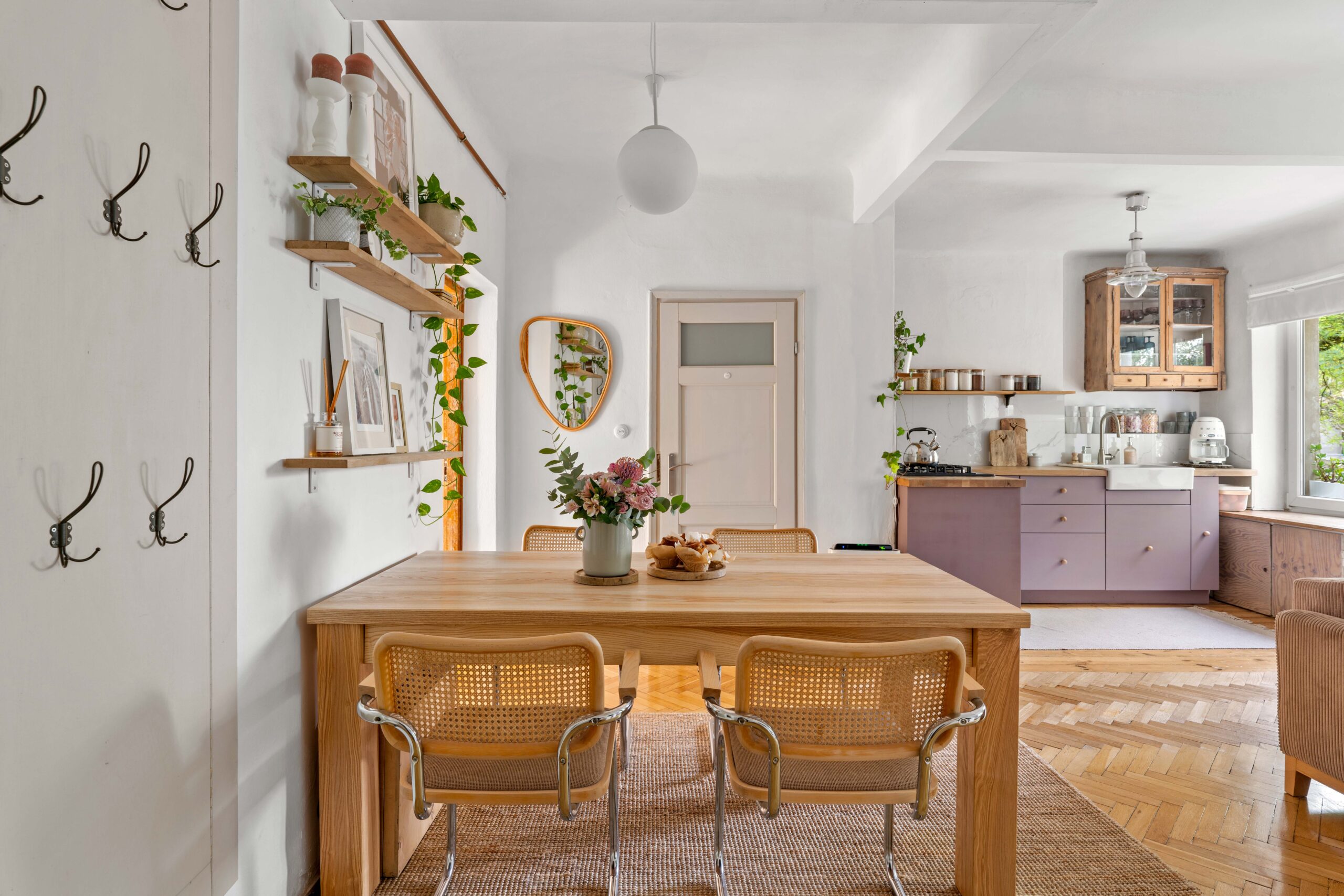 - Słoneczny, otwarty salon z aneksem kuchennym od strony zachodniej, gwarantujący mnóstwo naturalnego światła przez większą część dnia. To idealne miejsce na duży stół i wygodną kanapę.